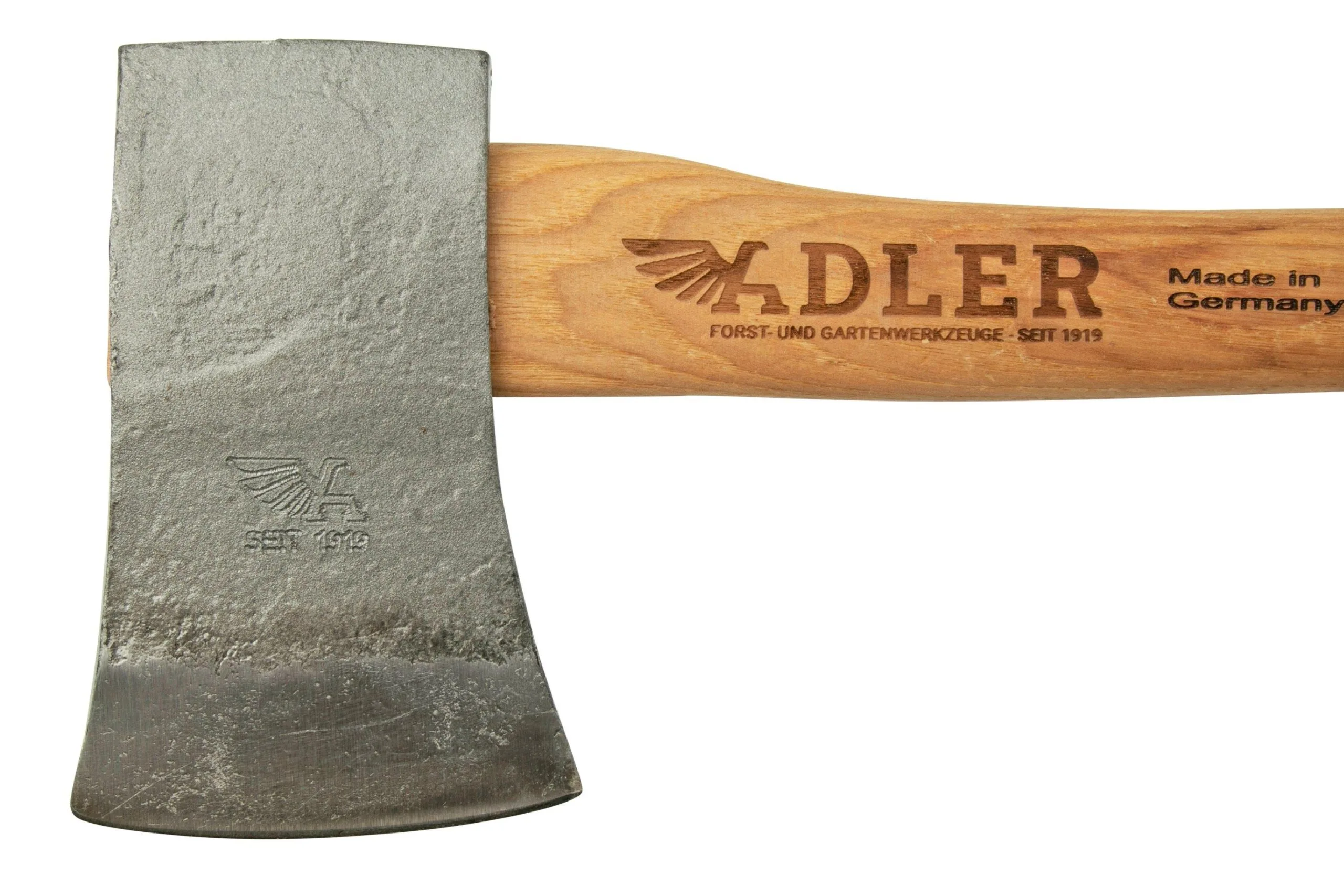 The Adler Yankee Hatchet is great for taking on adventures. The axe is inspired by typical American hand axes with a broader, heavier head than the German axes. The cutting edge is also thinner and sharper. Perfect for making your way through the forest. The axe is made entirely in Germany. It comes with a sturdy leather sheath.