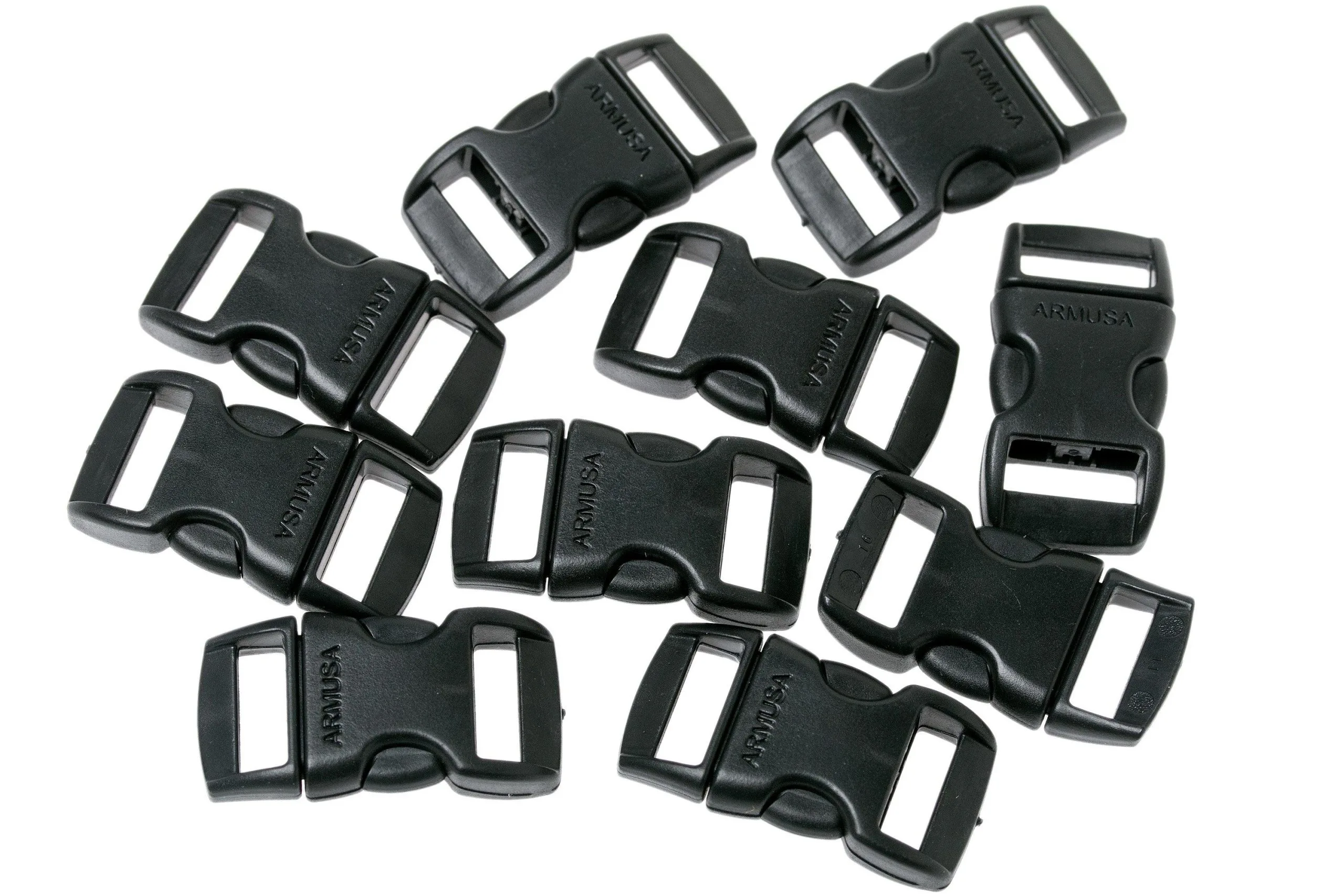 The Atwoord Rope MFG arc buckle is a set of ten buckles in one package. Perfect for everyone who loves to make paracord bracelets or lanyards. The unique aspect of these buckles is that the clasp is bent. Great when you use the buckle for a pracord bracelet, because the whole fits nicely around your wrist. In addition, you don’t get caught behind surfaces and scratch the buckle because nothing sticks out.
