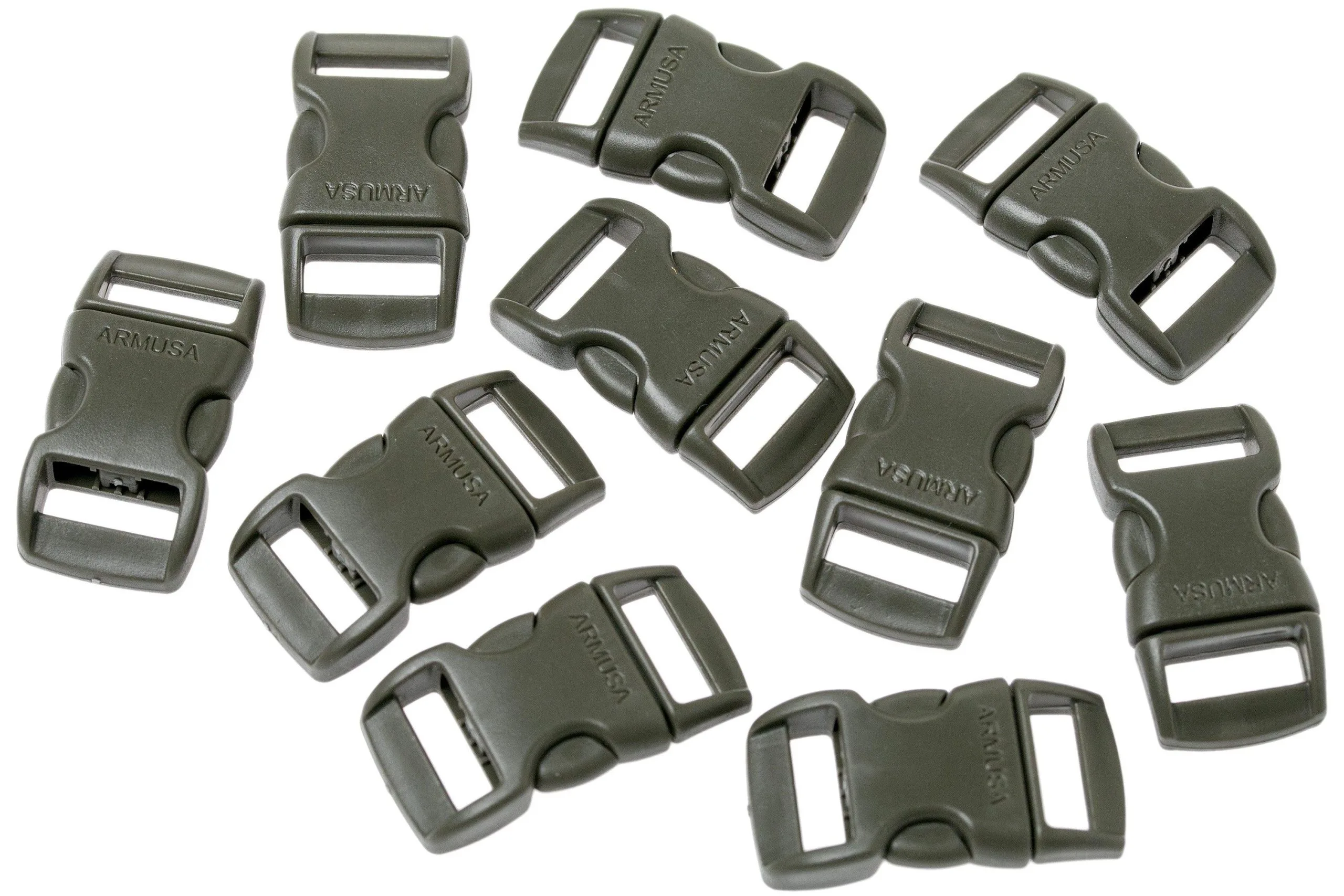 The Atwood Rope MFG arc buckle is a set of 10 green buckles in one package. Perfect for everyone who loves to make paracord bracelets or lanyards. The unique aspect of these buckles is that the clasp is bent. Great when you use the buckle for a pracord bracelet, because the whole fits nicely around your wrist. In addition, you don’t get caught behind surfaces and scratch the buckle because nothing sticks out.