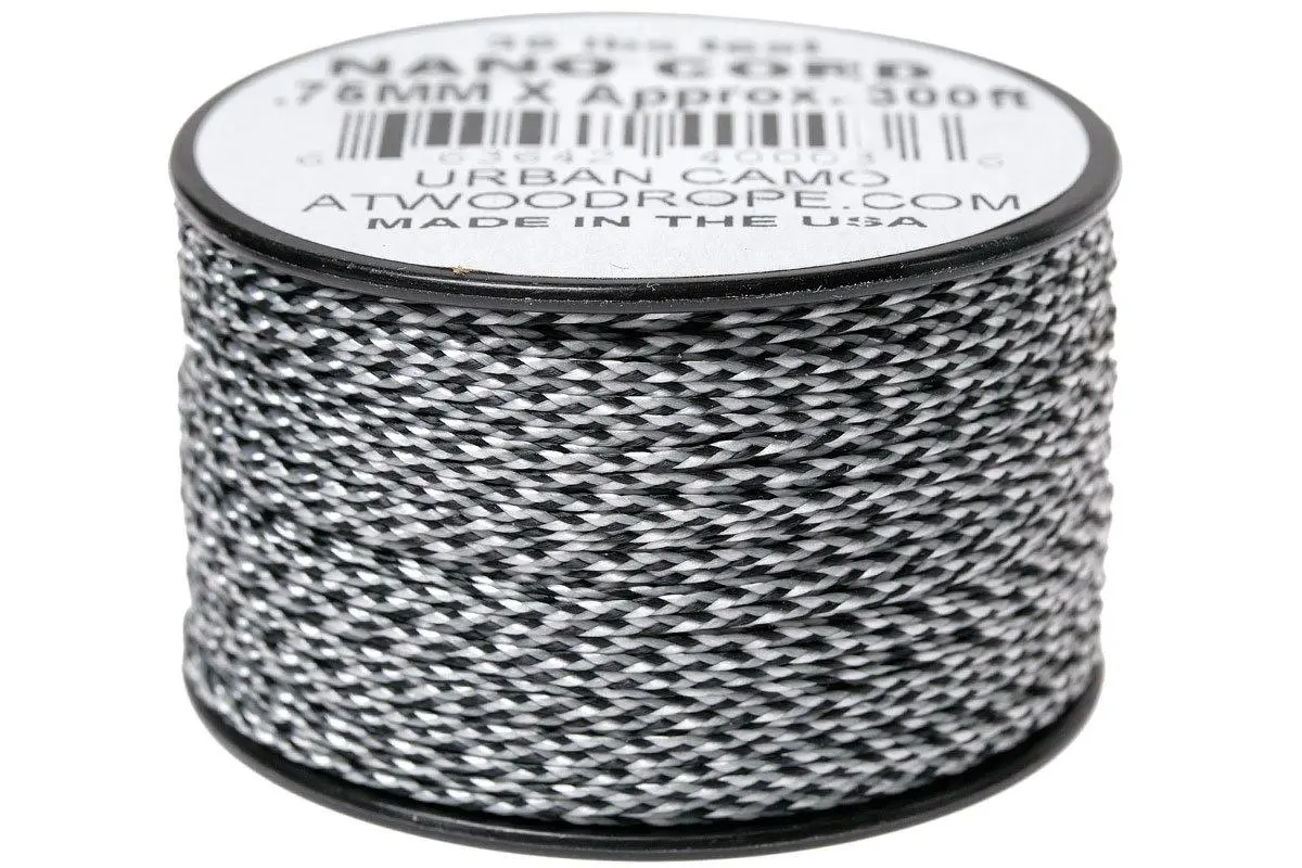 Atwood Rope MFG Nano Cord is a great tool for various purposes. Nano Cord is comparable to Paracord and Micro Cord, but only slightly thinner. Nano Cord is comprised of one single strand without core. As such the rope is only 0.75 mm thick. This nano cord is added to a choil and has a total length of 300 ft (91.44 meters).