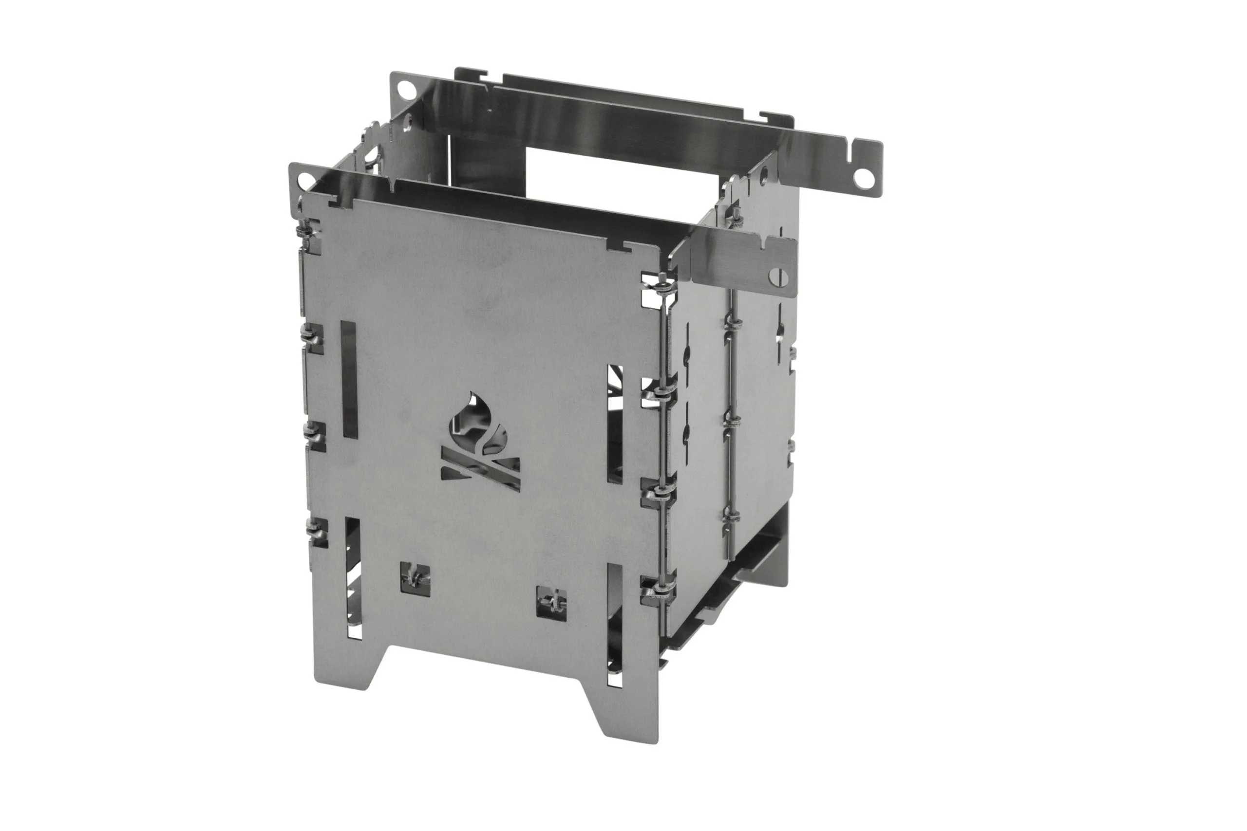 The Bushcraft Essentials Bushbox LF is a solid titanium stove. The great thing about this stove is that it is so easy to assemble. The only thing you have to do is fold it open. Within seconds it will be good to go, enabling you to start your fire. You only need a little fuel to cook, the air supply is namely incredibly efficient. Also, the sides properly protect your fire from the wind. This Bushbox works with branches and biomass, but you can also use it with a methane burner. From Trangia, for instance. But that is not all. The Bushbox can also handle Esbit blocks, charcoal and much more.
