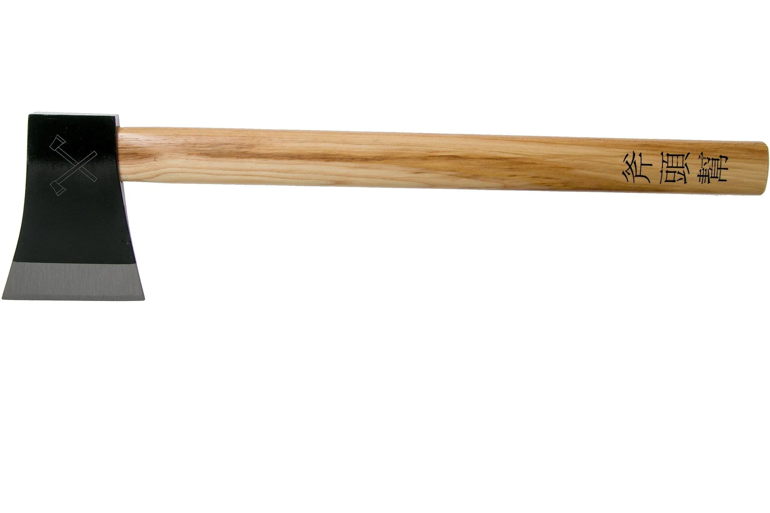 The Cold Steel Axe Gang axe is a tribute to the axes you often see in martial arts films. Cold Steel is a fan of martial arts, and members of their team often help out in Hollywood in developing martial arts scenes. You often see the classic Chinese axe in Kung Fu films, but this Cold Steel Axe Gang axe is not just a film prop! The head is heat treated and can be sharpened razor-sharp. The handle made from American hickory wood is enhanced with the Kanji characters for ‘Axe Mafia’. Please note: sharpen the axe to make sure it is really sharp.
