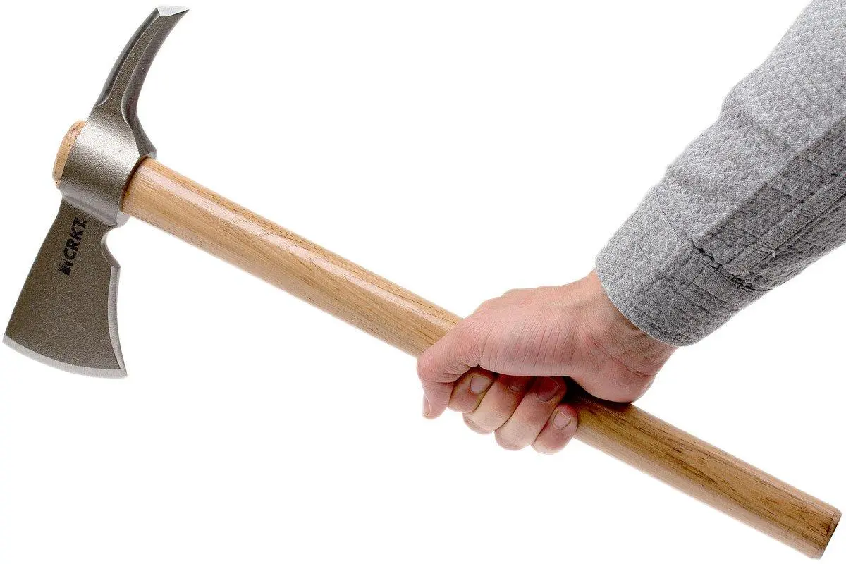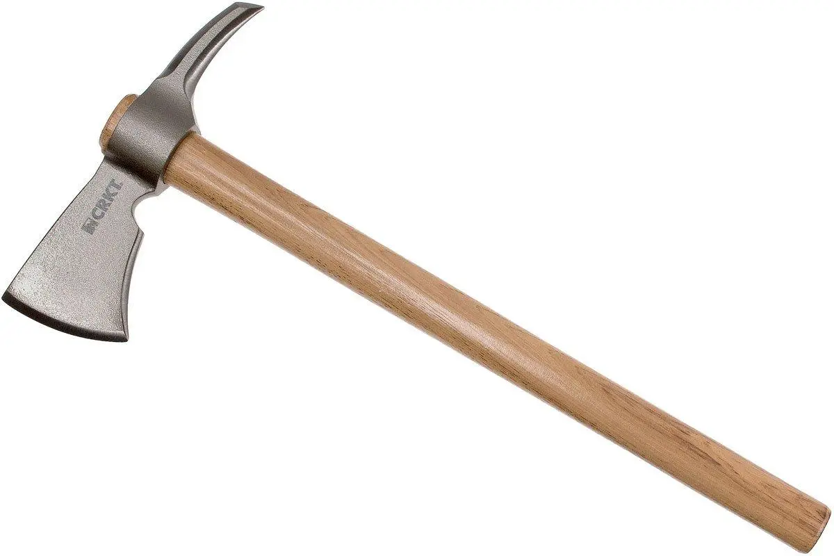The CRKT Woods Kangee T-Hawk 2735 is an axe that was designed by Ryan Johnson. This American designer has been an axe specialist for over 30 years. The carbon steel axe head has a razor-sharp, hardened cutting edge for the more demanding tasks. The back is enhanced with a sharp tip. Great as a crowbar or pickaxe. This wooden handle is’ all-American made’. To be precise, the handle has been made by the Tennessee Hickory company. This type of wood can handle blows during use. It feels great in hand and is enhanced with a protective coating. The handle extends a little into the axe head. As such you can easily place it on its head. This tough axe is made to be used!