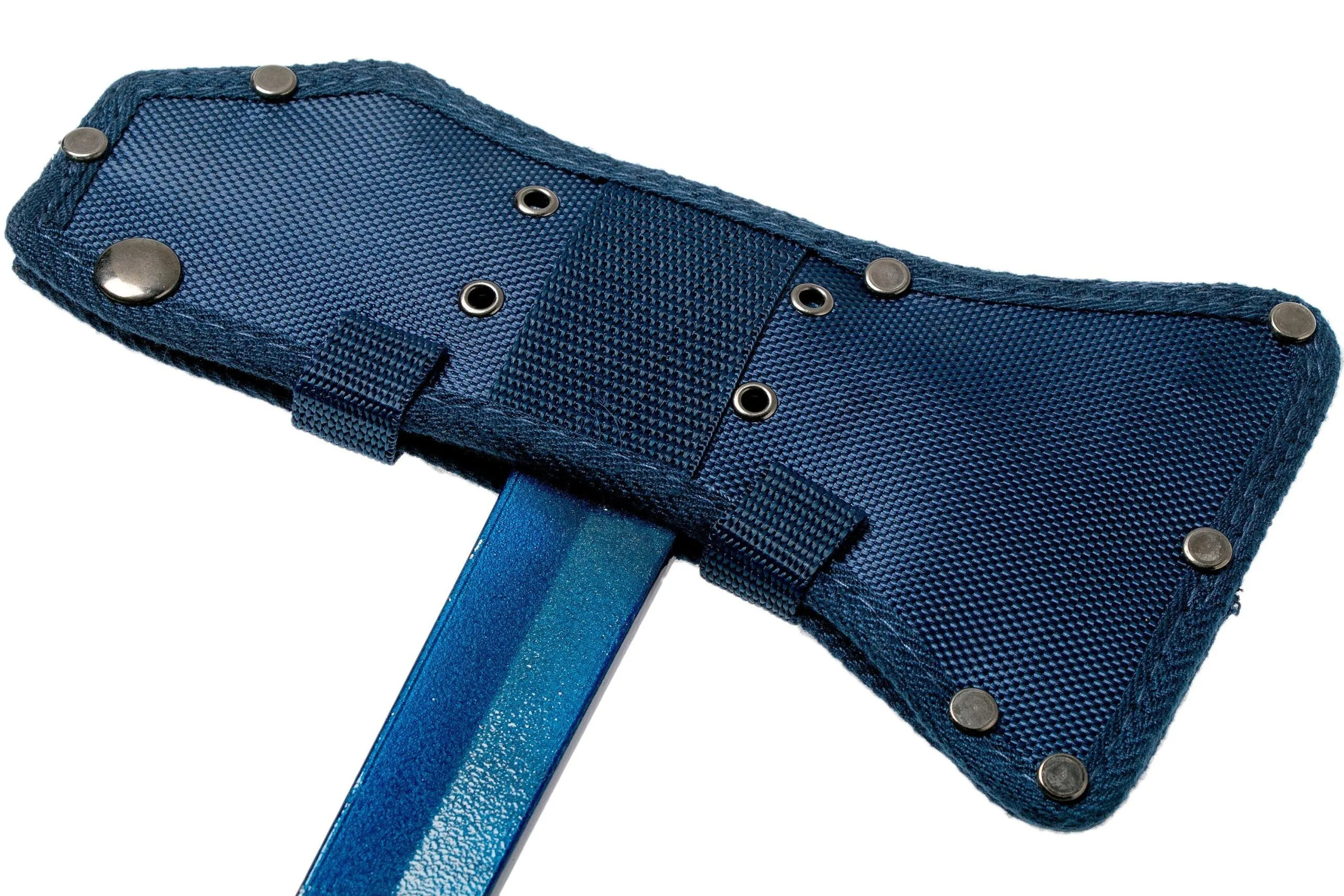 The Estwing Black Eagle Tomahawk axe blue was designed for athletes and soldiers. This axe is a versatile tool that can be used to chop, break and throw. Both sides of the axe head have been sharpened. Here the broad side is better for splitting jobs. The narrower side of the axe head is mostly suited because of its piercing qualities. It is for a reason that this side might remind you of a tanto-style knife. The light-weight design makes carrying the axe with you incredibly easy. The handle of this axe has been stylishly finished with leather. Black Eagle tools are perfectly balanced and made to last a lifetime. Made in the United States from real American steel.