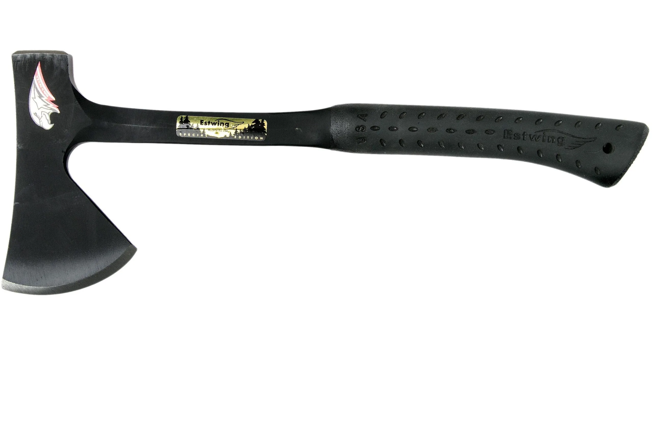 The Estwing’s Camper’s axe is practical to fell trees and for other chopping tasks in the garden or the woods. The not-too-heavy axe head, combined with the slimmer handle, gives this axe the perfect balance for bushcraft purposes. The Estwing’s Shock Reduction Grip takes care of comfort and sustainability. The construction is forged from one piece. That is unique and increases the strength. Made in the United States from real American steel.
