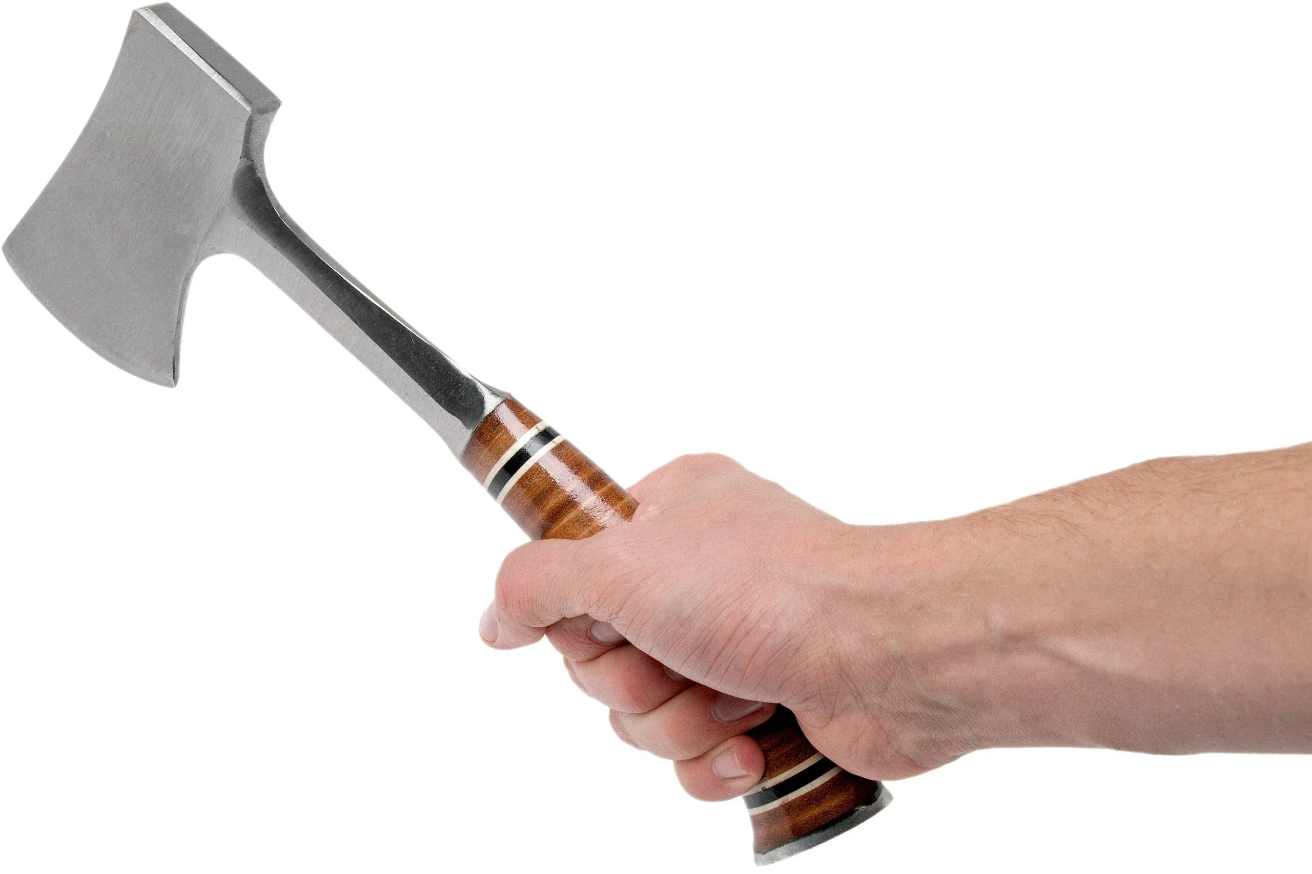 The Estwing Sportsman’s E14A is a stunning, balanced, small axe you can take with you during a hike, camping trip, or use for small chopping tasks when gardening. The construction is forged from one piece. That is unique and increases the strength. Finished with a leather handle to absorb the blows. This axe comes with an innovative nylon sheath that can easily be attached, can handle moisture and be used to carry the axe with you or to hang it up. This can be worn on the belt (maximum belt width: 5 cm).
