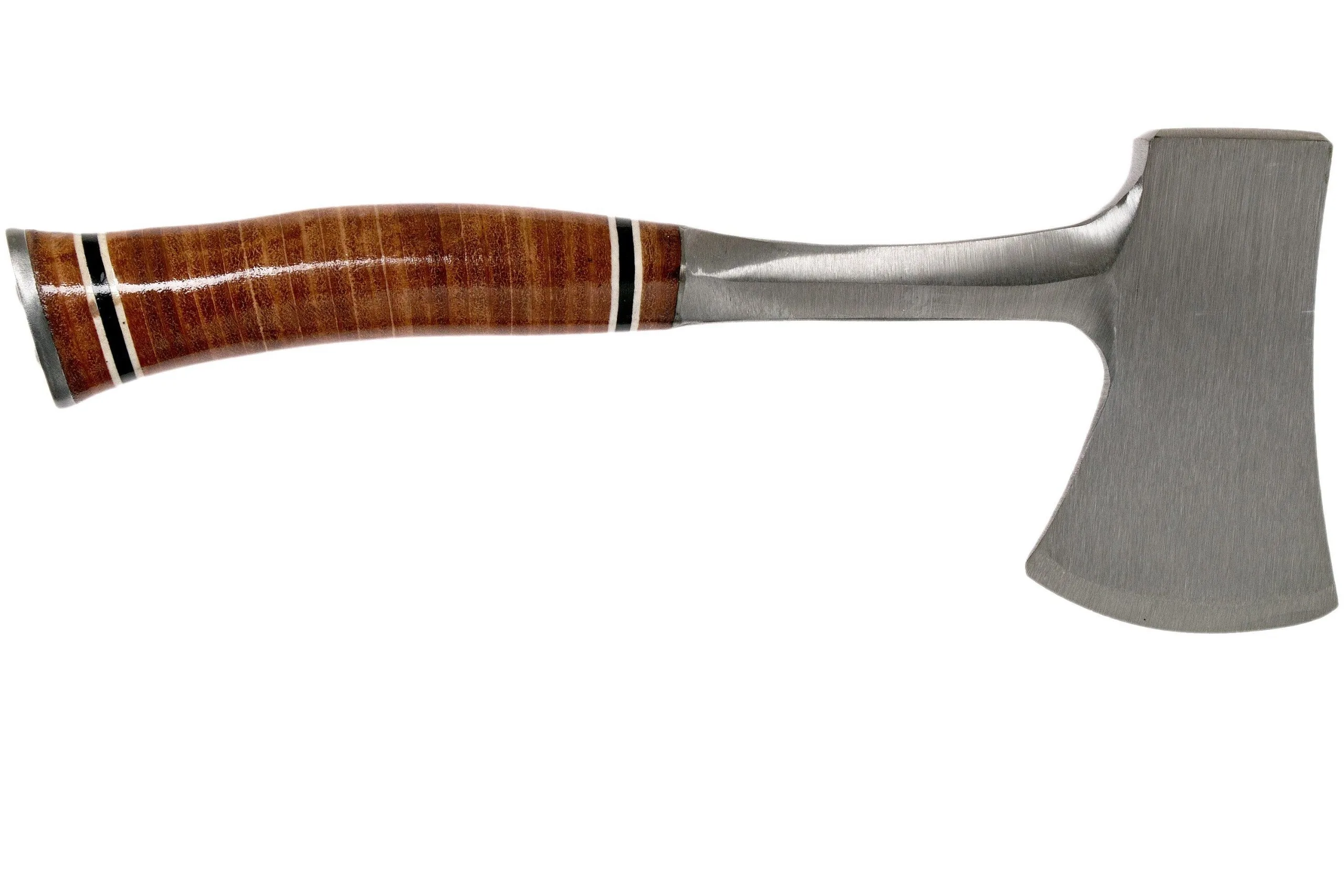 The Estwing Sportsman’s E24A is the slightly bigger brother of the E14a. A stunning, balanced, small axe you can take with you during a hike, camping trip, or use for small chopping tasks when gardening. The construction is forged from one piece. That is unique and increases the strength. Finished with a leather handle to absorb the blows. This axe comes with an innovative nylon sheath that can easily be attached, can handle moisture and be used to carry the axe with you or to hang it up. This can be worn on the belt (maximum belt width: 5 cm).