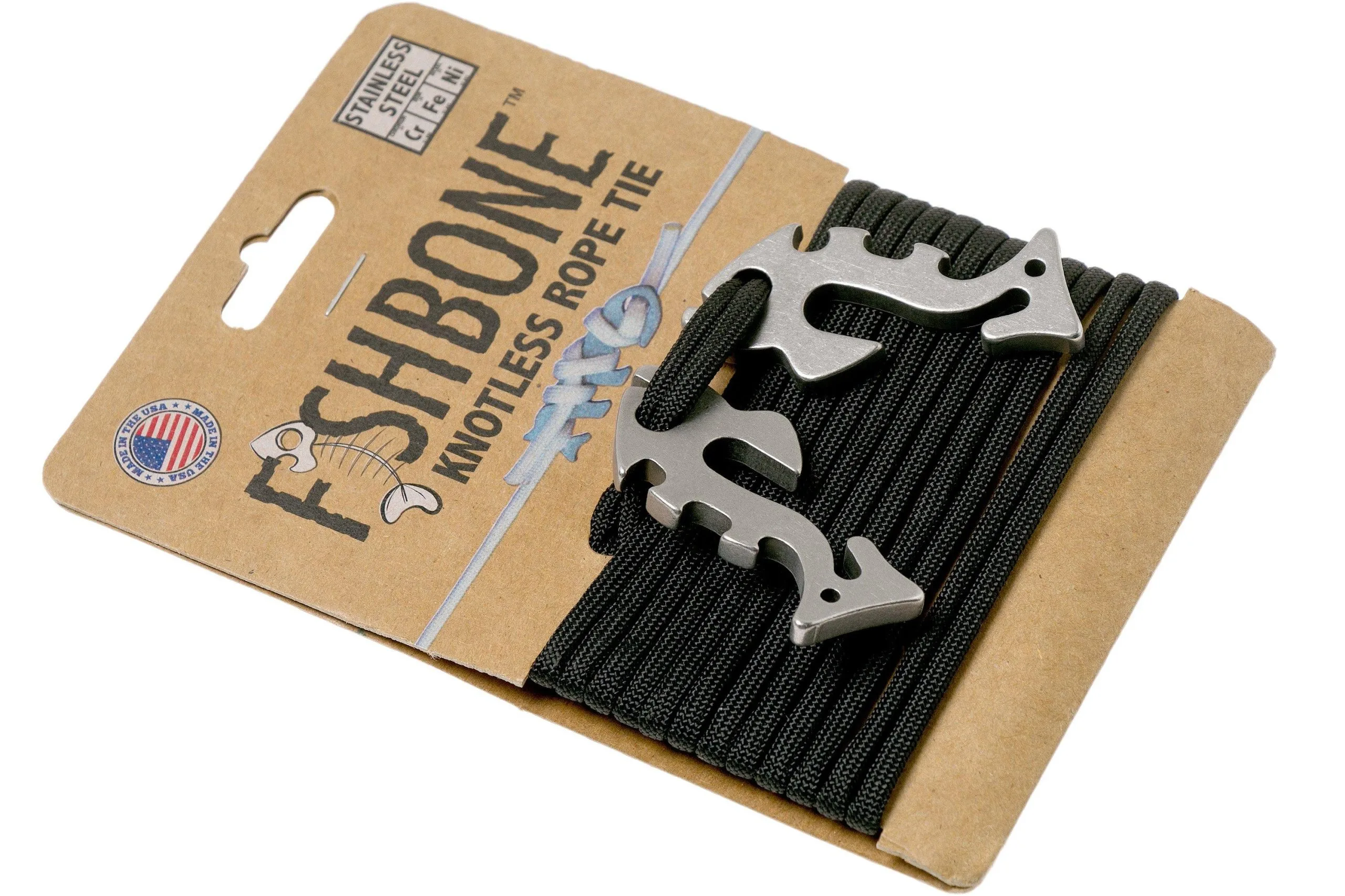 A Piranha (also called Fish Bone 2.0) is a great tool that enables you to secure paracord up to 4 mm thick without tying knots. The basic principle of all versions is the same: you place the end of your paracord on your Piranha and wrap it around it. Because of friction your paracord will be properly secured. The other side is wrapped around the head of the fish twice. A Piranha is a little stronger and thicker than a Fish Bone.