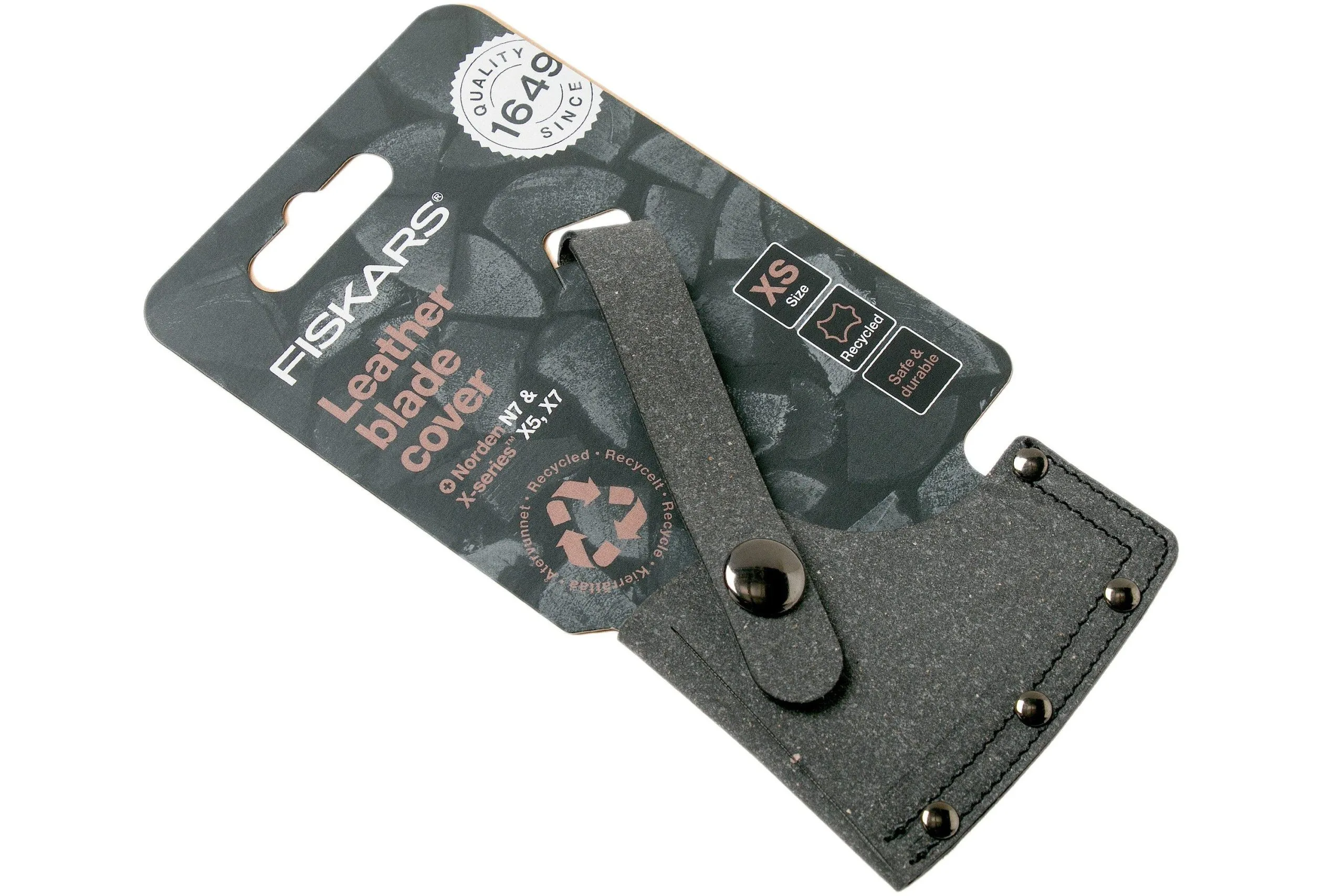 The luxurious Fiskars Premium Recycled Leather axe sheath XS is made from 100% recycled Italian leather. The leather is naturally water-repellent protecting your axe from rust. The precisely stitched, solidified edges ensure that the head is nicely protected. Solid press-studs make sure the sheath stay in place. This sheath can be used on the Fiskars N7, X5 and X7.