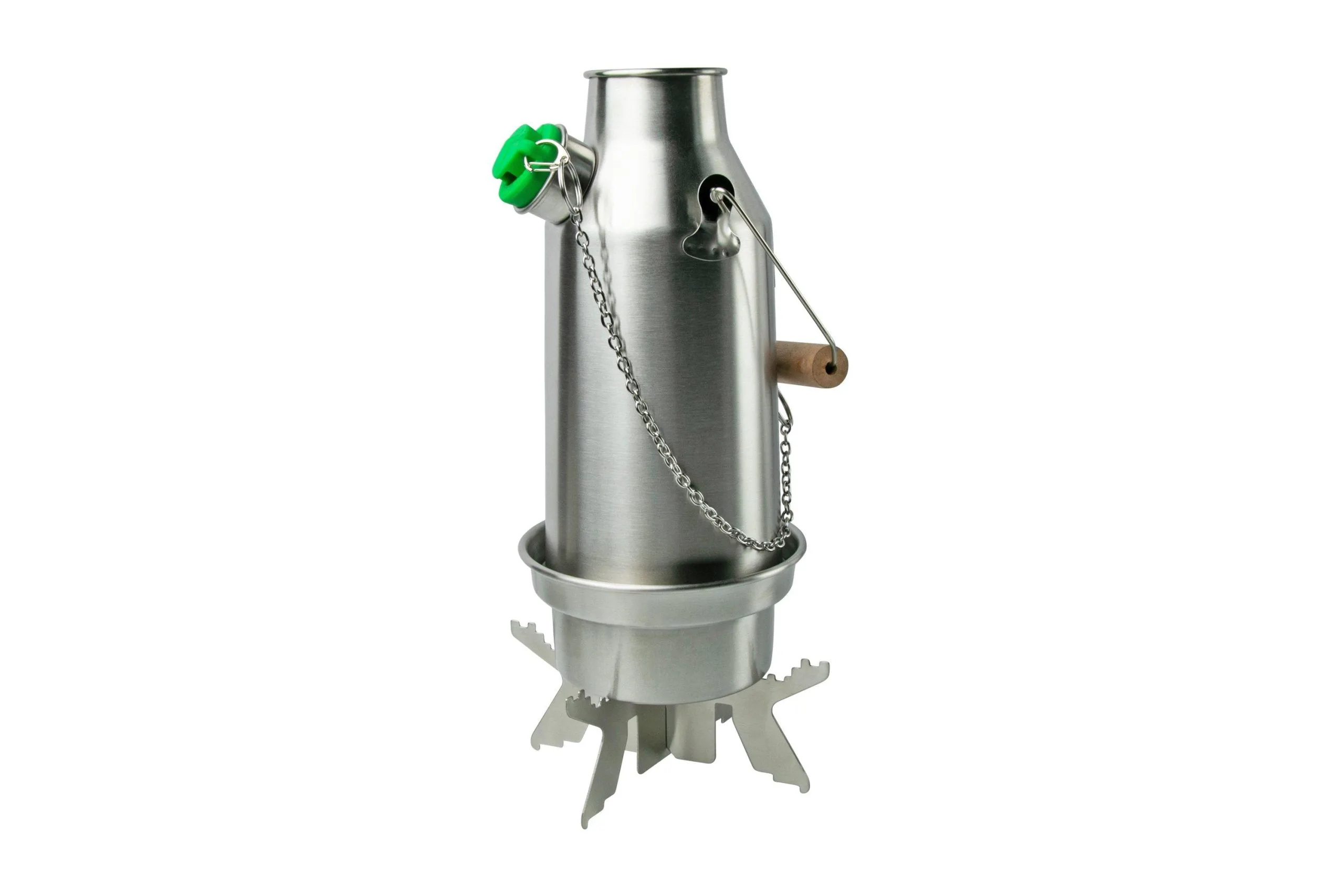 The Kelly Kettle Trekker Kit is a complete one-person cooking set. Ideal for hiking, canoeing and camping. The Trekker works in all conditions and you can cook with it on firewood, dry grass, bark, pine cones, etc. It only takes about 3 minutes to boil 600 ml of water with this Kelly Kettle. All parts of the kit are made from stainless steel. This is strong and durable, and will not absorb odours or flavours.