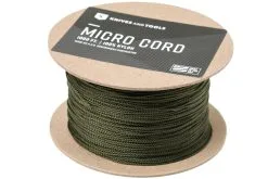 Knivesandtools Micro Cord Knivesandtools Micro Cord Made in USA is a practical tool for various purposes. Micro Cord is in fact paracord, but without the strands in the middle. So only the braided casing. What remains is a strong piece of rope with a tractive force of approximately 80/90 pounds (36/40 kg) and a diameter of only 1.12 mm. This Micro Cord is added to a choil and has a total length of 1000 ft (304,8 meters).