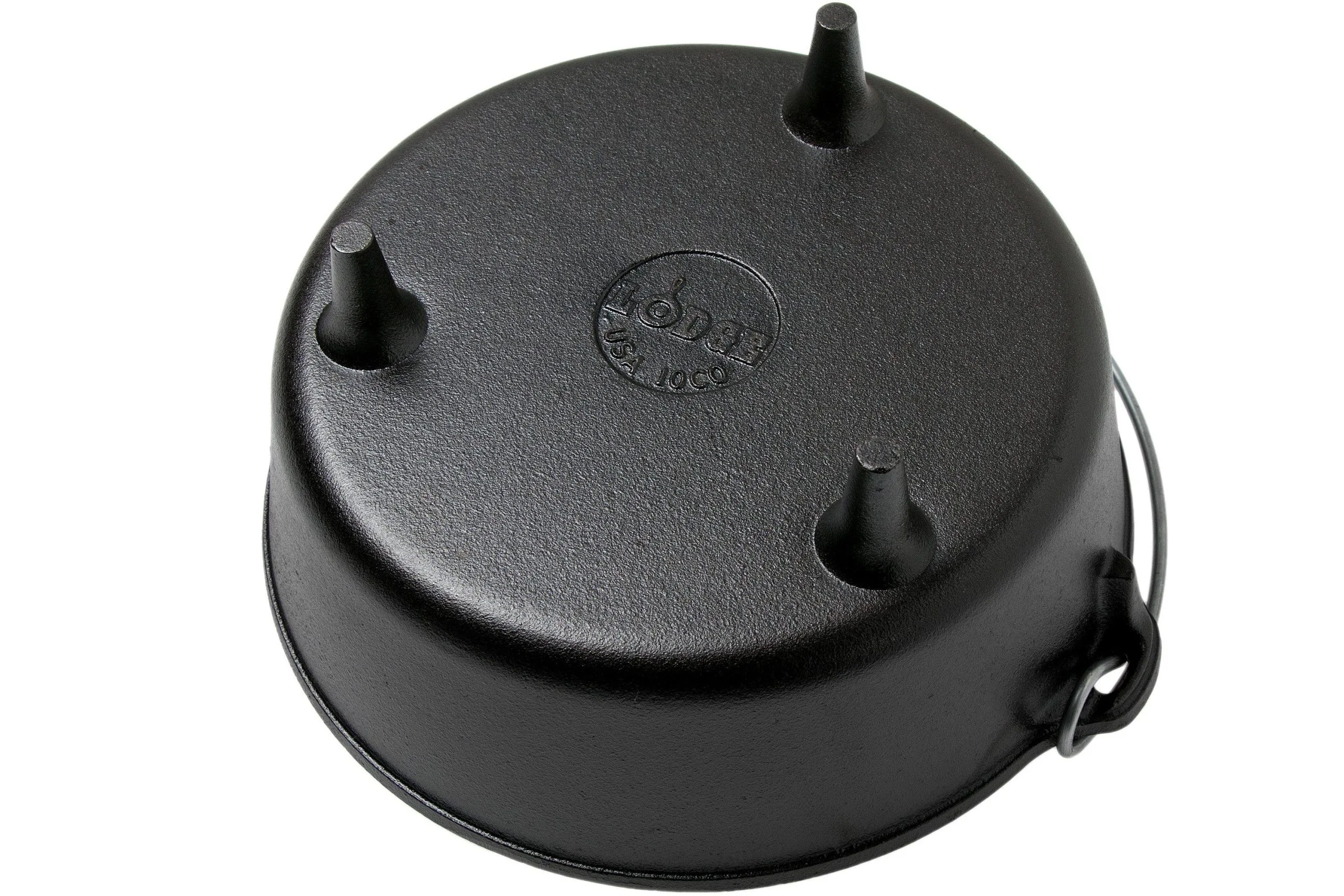 This Lodge Dutch Oven (shallow) with lid can do it all. Use it on the stove, in the oven, or over an open flame. You can stack hot coals on top of the lid, or turn the lid over and use it as a baking dish. For high heat simply place the pan on top of hot coals. Because of the feet it will always be at the right height. Do you prefer slow cooking? If so hang the pan over an open flame using a tripod! The cast-iron retains the heat well and perfectly distributes it.