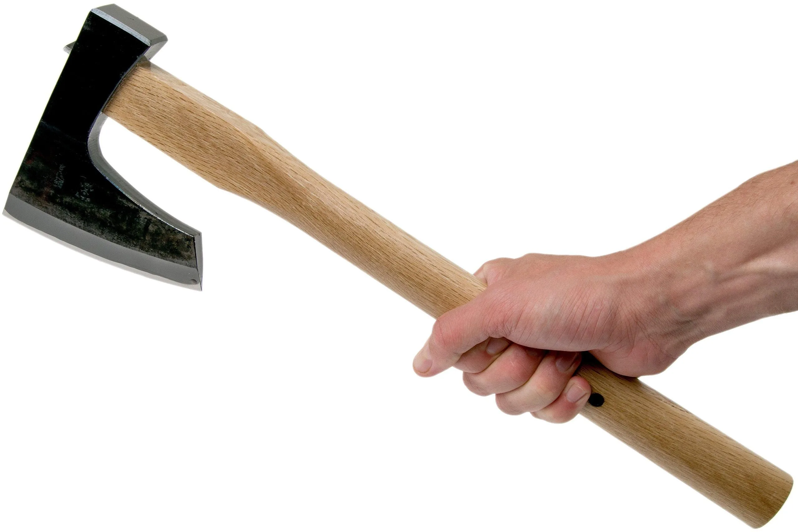 The Mizuno Seisakujo Warikomi Kariwaku Masakari Japanese axe is suitable for various applications and for various wood varieties. With this axe, the end of the head hangs fairly close above the handle. That makes this axe great for lighter splitting work. This axe was designed for precise cutting tasks and not for the blunt stroke. Use the axe with a touch of love and you will experience unparalleled speed and efficiency.