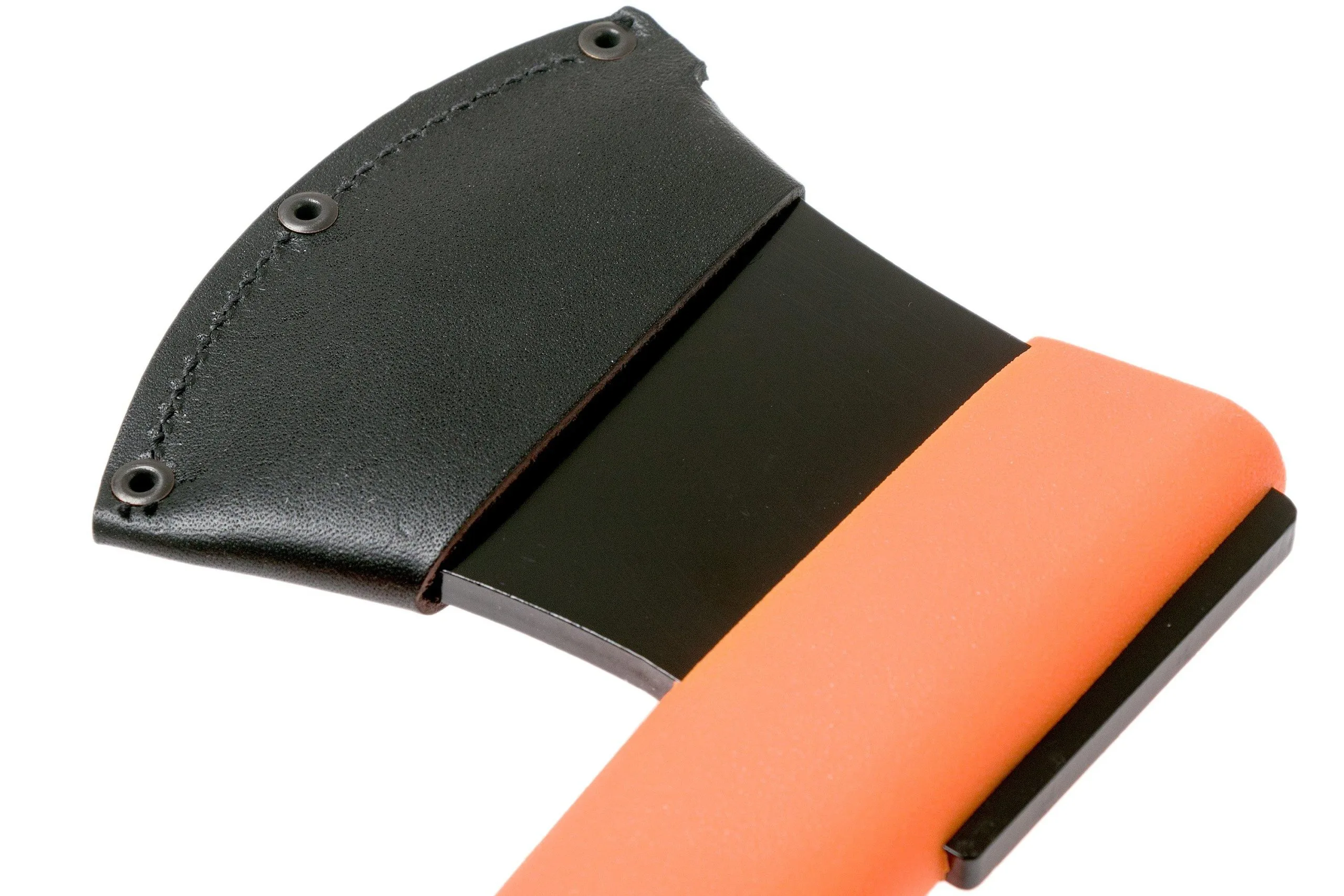 The Mora Camping axe (also called Mora Outdoor Axe) is a compact, light-weight axe for all your camping trips. The polypropylene handle can handle blows really well. In terms of construction Mora chose to enclose the axe head with the axe handle. No screws or wedges: this head will never let go. Your hand also firmly closes around the handle. Because of the large curve at the end of the handle you will have the ultimate amount of grip, even with only one hand.