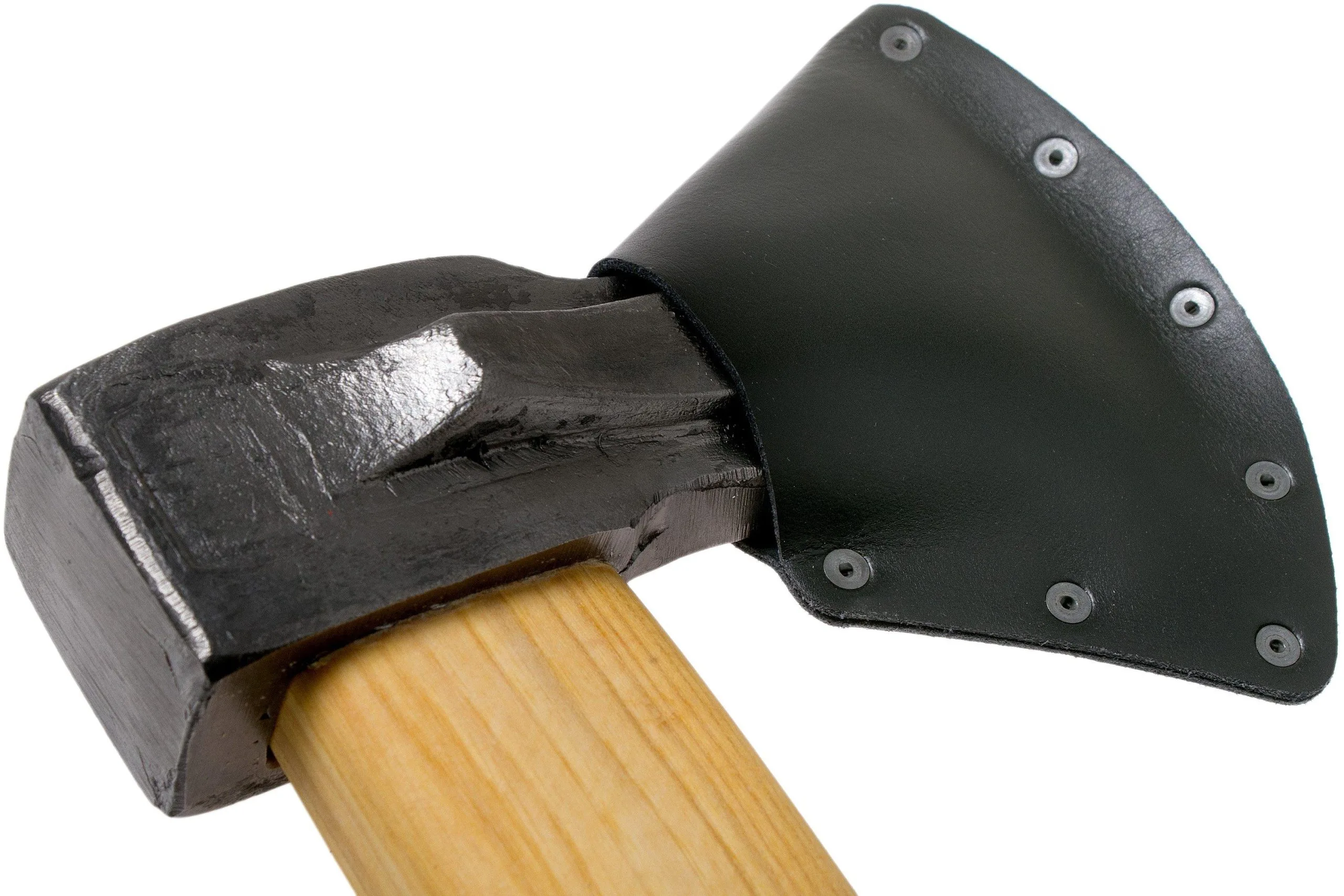 This Müller splitting axe Biber Classic-S 1800g is a classic Müller splitting axe. it is part of their premium Biber Classic-S collection and was forged by hand in Austria. You can tell when you look at the classic, rough look of the steel of the head. This head has a flared shape, to make sure you have a broad cutting surface. Because of the built-in wedge in the head the wood is really pushed apart during use. The Biber Classic-S splitting axe comes with a handmade leather sheath.