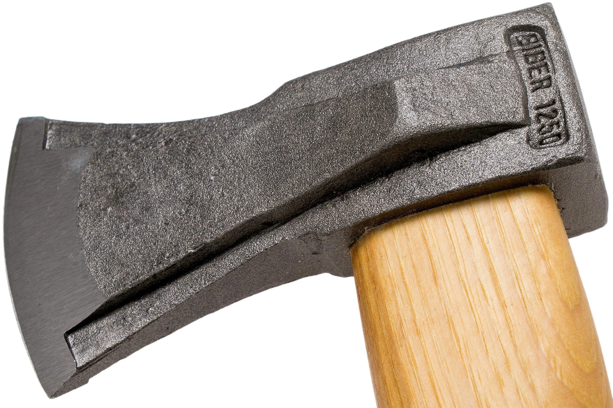 The Müller Biber Classic-S is a splitting axe with head that weighs 1200 grams and has a 60 cm handle. Great when splitting firewood. The handle is made from American Hickory wood. This type of wood is incredibly strong and won’t break or splinter. it is part of their premium Biber Classic-S collection and was forged by hand in Austria. You can tell when you look at the classic, rough look of the steel of the head. This head has a flared shape, to make sure you have a broad cutting surface. Because of the built-in wedge in the head the wood is really pushed apart during use. The Biber Classic-S splitting axe comes with a handmade leather sheath.