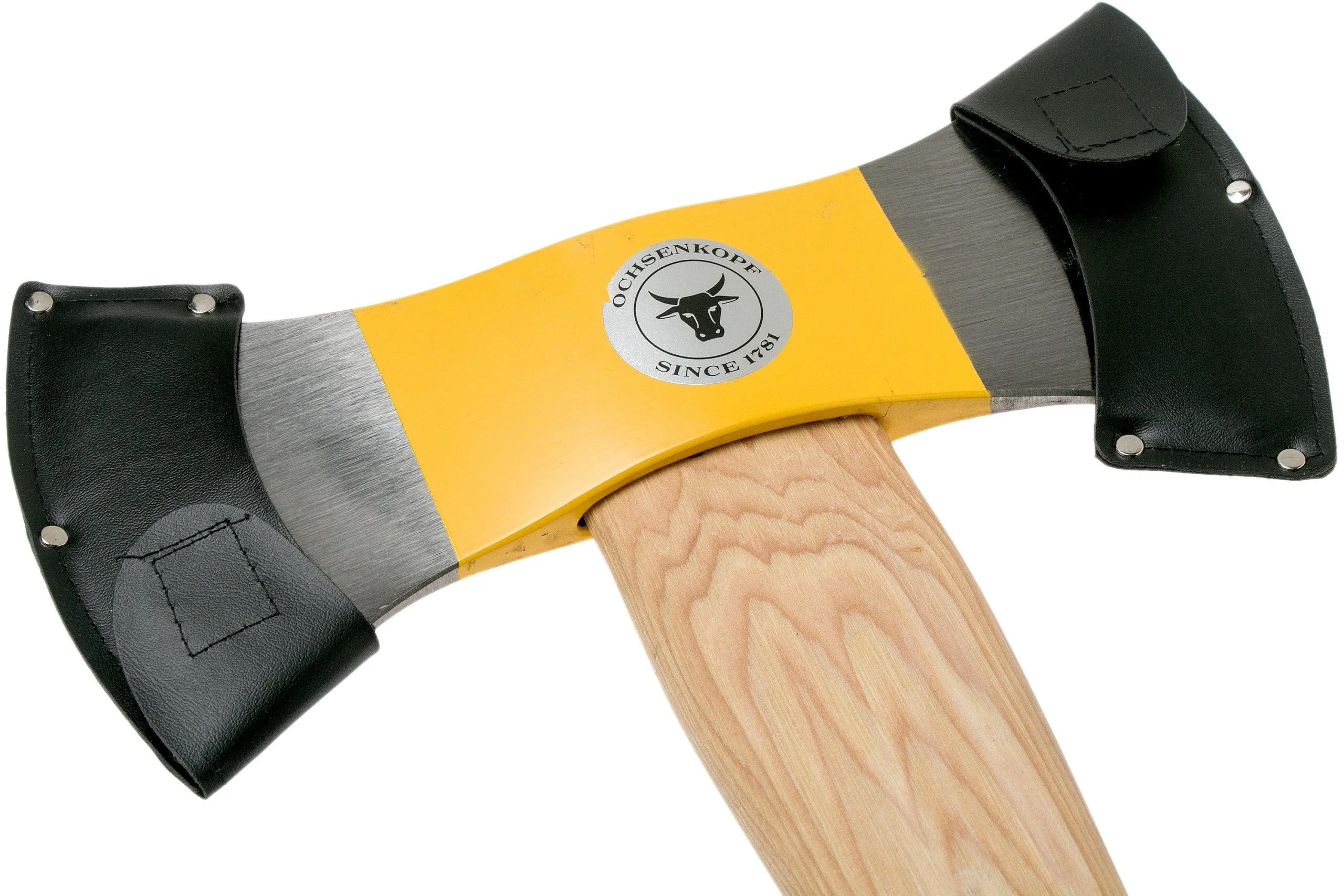 The Ochsenkopf 16 H Iltis double axe model Canada is the Canadian model of the felling axe. With two cutting edges for, for instance, two different sharpening forms with only one axe. This axe is perfect to remove branches or fell trees. Because of the low weight and 13.5 cm razor-sharp edge you have more power with less effort. It is ergonomic and works efficiently.