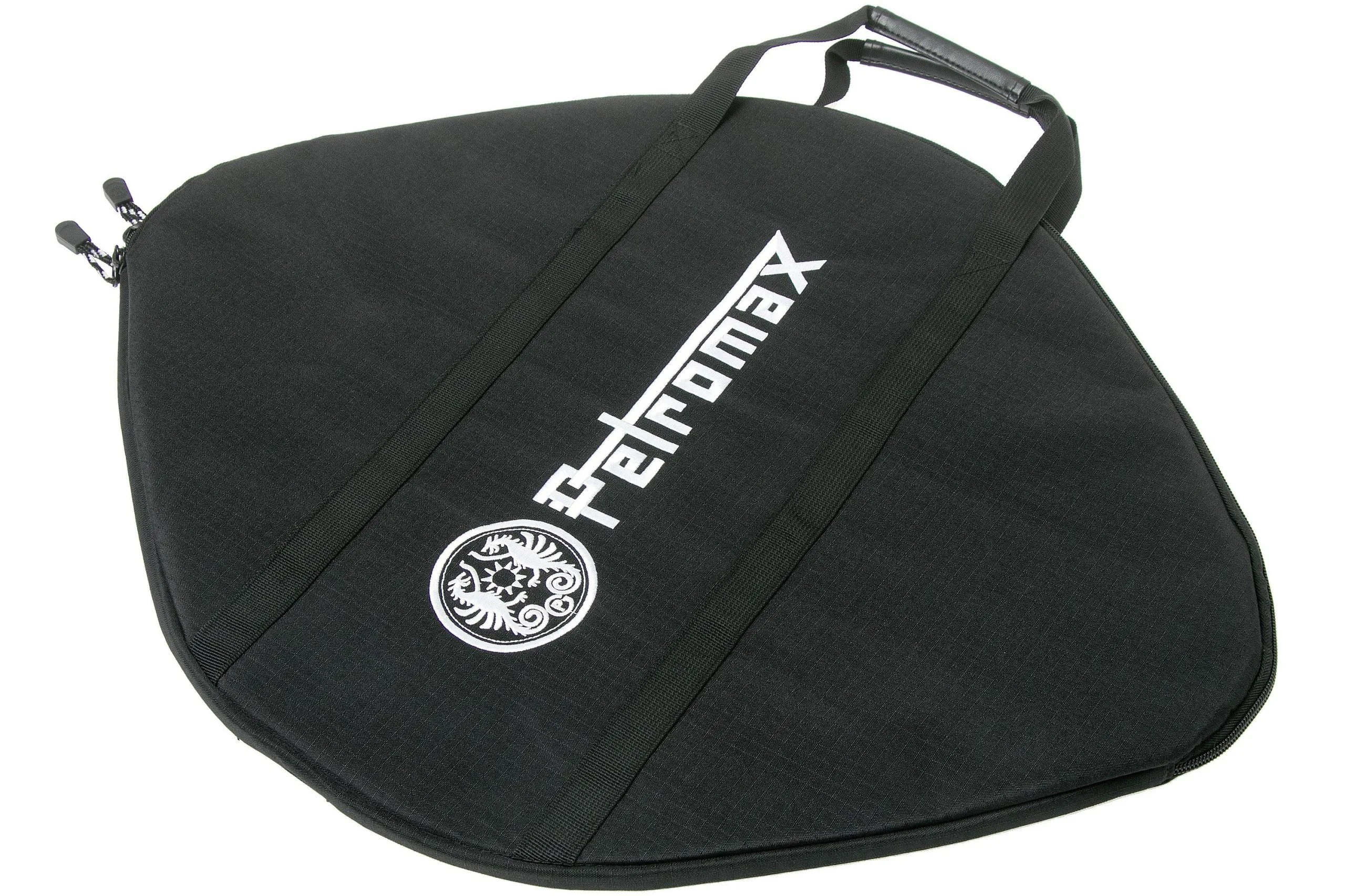 This Petromax bag for fire bowl FS48 protects your fire bowl when you take it with you or want to store it. It is a solid bag made from padded ripstop material. The feet fit inside a different compartment, and all accessories can be placed inside the mesh inside compartments. The handles of the bag are extra strong.
