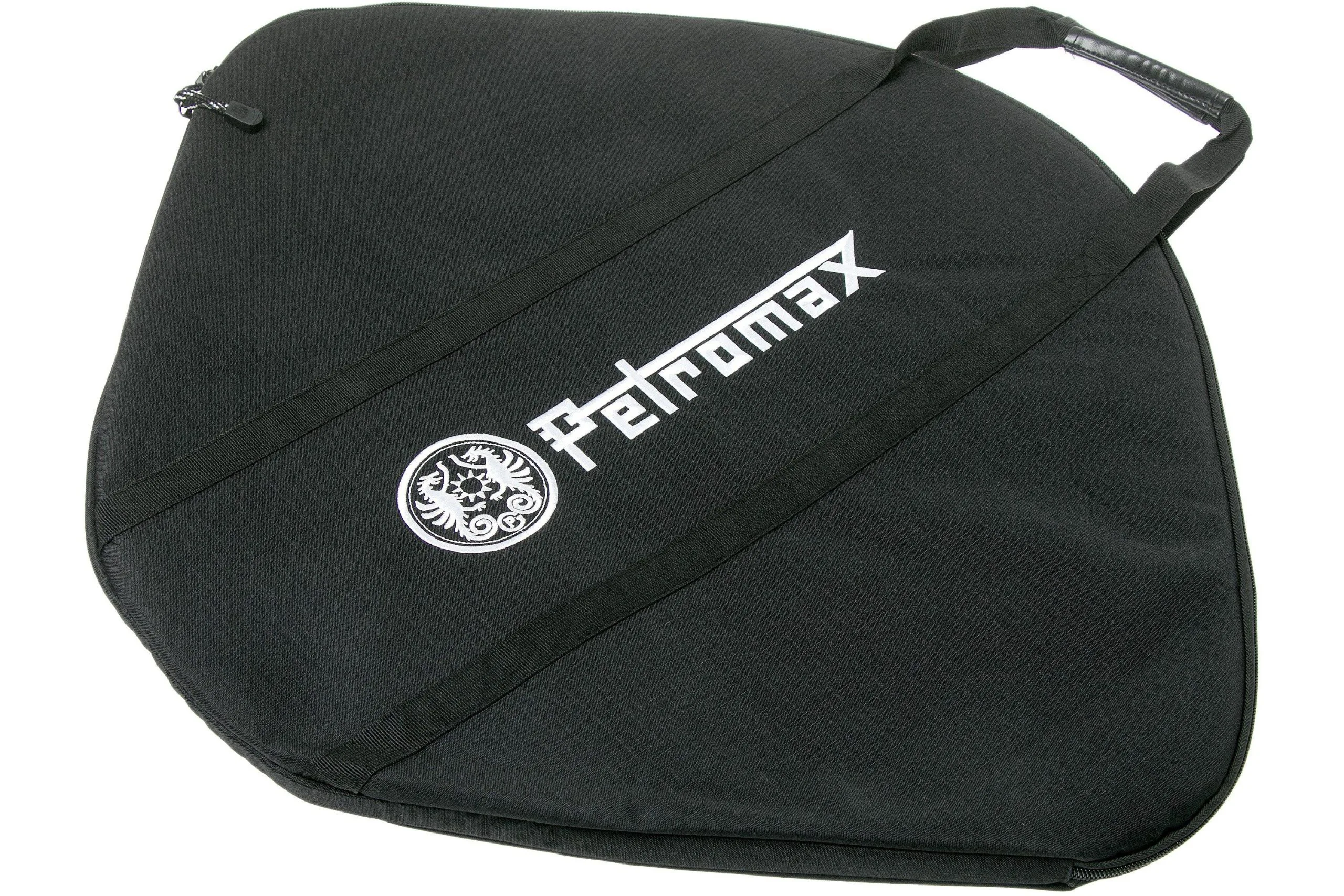 This Petromax bag for fire bowl FS56 protects your fire bowl when you take it with you or want to store it. It is a solid bag made from padded ripstop material. The feet fit inside a different compartment, and all accessories can be placed inside the mesh inside compartments. The handles of the bag are extra strong.