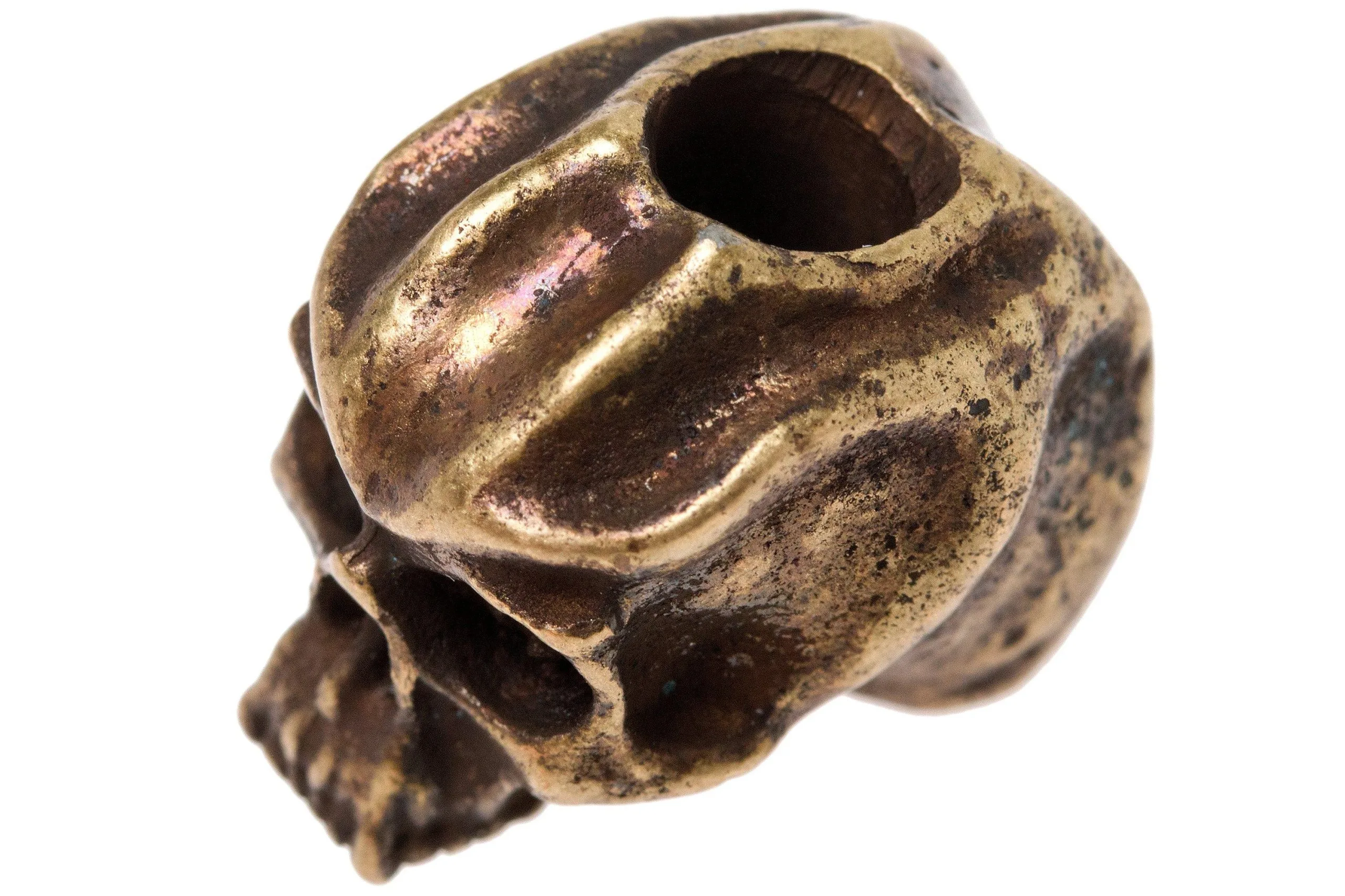 The Schmuckatelli Cyber Skull Bead Roman Brass Oxidized is a robust bead. With this bead you can personalize your lanyard or paracord bracelet. This bead, which is made from lead-free tin, has a Roman Brass Oxidized finish. It adds a nice matt golden finish. The inner size is approximately 5 mm. Perfect for paracord 550. It has room for two strands of paracord.