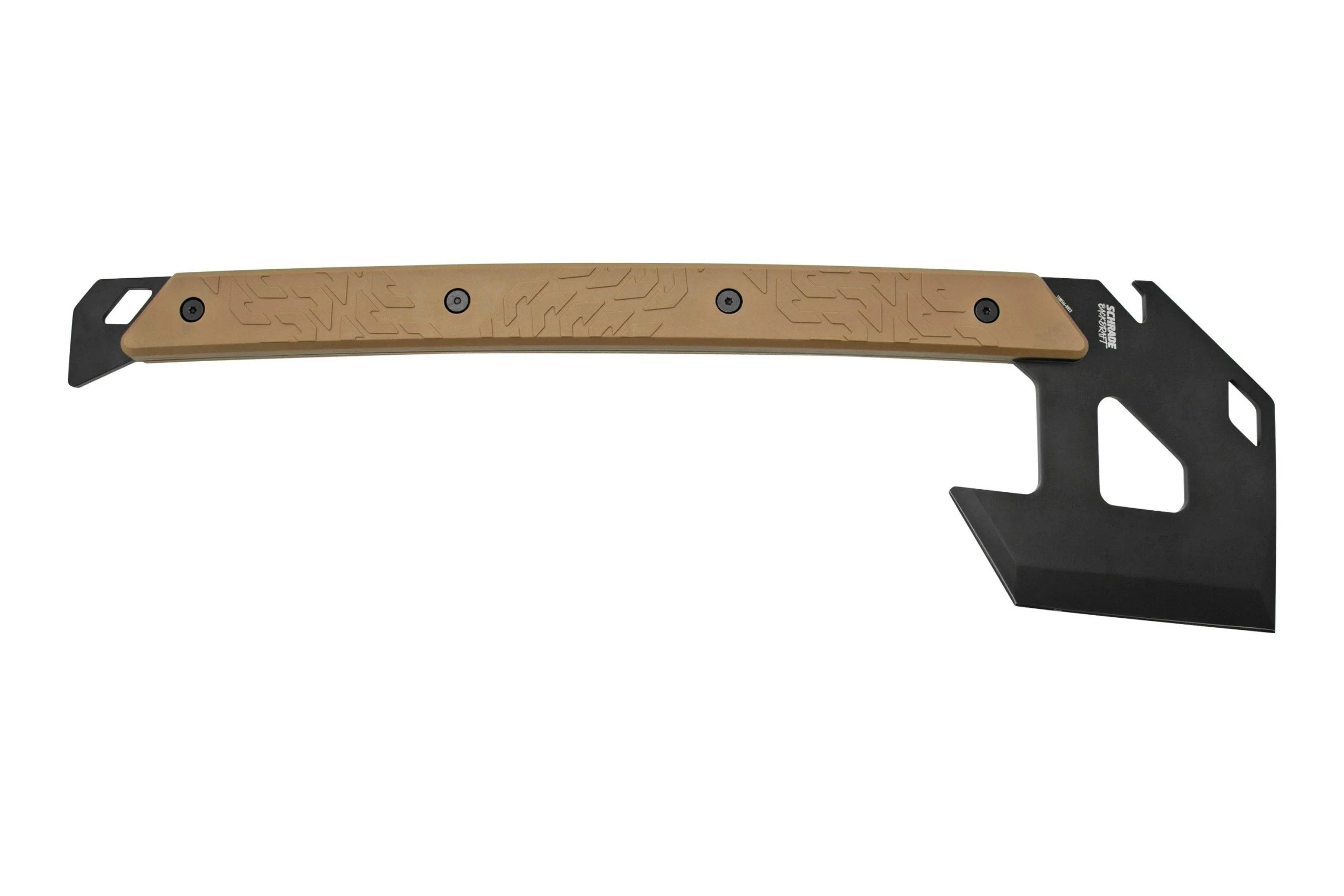 This Schrade Backdraft 19.5″ Axe is a tough axe. Perfect for use during a camping trip. Thanks to its simple yet effective design, this axe is suitable for all kinds of tasks in and around your campsite. Like splitting pieces of wood, for example. The handle is made from G10, attached to the full-tang frame. This means that the steel of the axe head extends all the way to the end of the handle. The result is a particularly strong and robust axe. In addition, the axe handle feels great in hand, and will not easily slip out of your grip. Schrade has carefully considered the axe head’s weight. That’s why they added cut-outs, so the axe weighs a little less. Therefore, the axe only weighs approx. 850 grams.