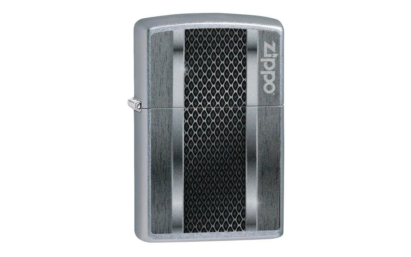 This street chrome Zippo lighter is enhanced with a metal perforation image and the Zippo logo in the front. Zippo lighters have been produced ever since 1932. The American company has virtually become a synonym for this type of lighter. Everyone has seen them! The function of a wick hanging in a reservoir of lighter fluid is characteristic for this lighter. By rotating the wheel alongside a flint the sparks will hit the wick. As such it will light up. A wind catcher is fitted around the wick. As such the Zippo has been quite wind-resistant for dozens of years, even before storm lighters emerged.